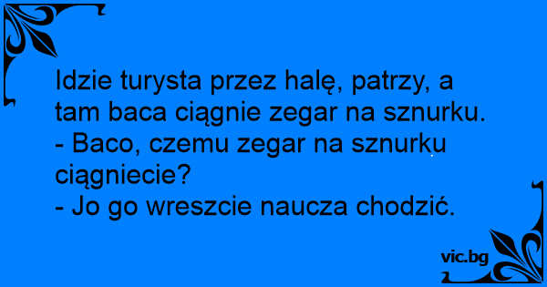 Idzie turysta przez halę, patrzy, a tam baca ciągnie zegar na sznurku.