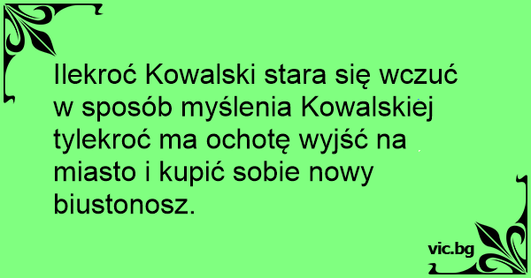 Ilekroć Kowalski stara się wczuć w sposób myślenia Kowalskiej tylekroć ma ochotę wyjść na miasto i kupić sobie nowy biustonosz.