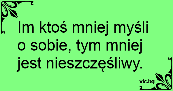 Im ktoś mniej myśli o sobie, tym mniej jest nieszczęśliwy.
