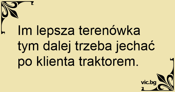 Im lepsza terenówka tym dalej trzeba jechać po klienta traktorem.