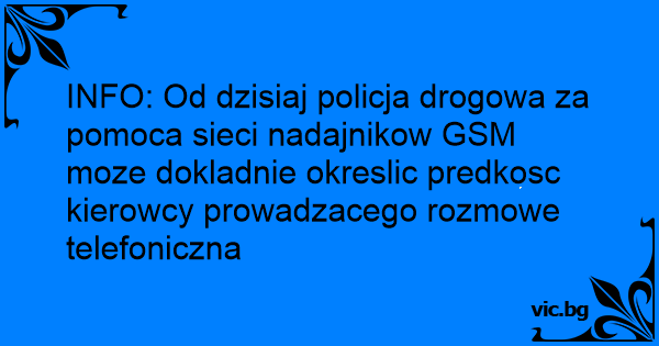 INFO: Od dzisiaj policja drogowa za pomoca sieci nadajnikow GSM moze dokladnie okreslic predkosc kierowcy prowadzacego rozmowe telefoniczna
