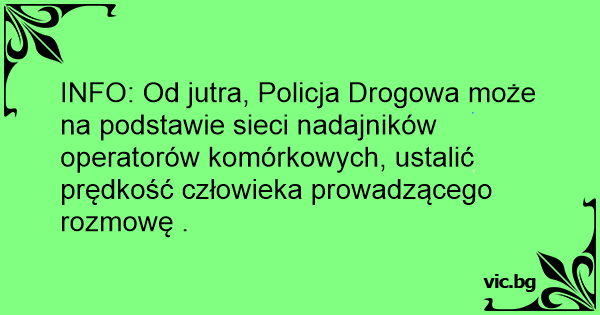 INFO: Od jutra, Policja Drogowa może na podstawie sieci nadajników operatorów komórkowych, ustalić prędkość człowieka prowadzącego rozmowę .