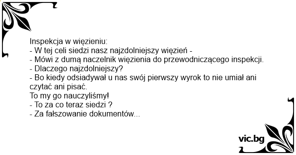 - Mówi z dumą naczelnik więzienia do przewodniczącego inspekcji.