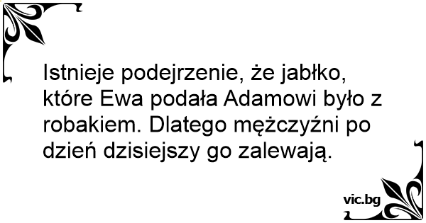 Istnieje podejrzenie, że jabłko, które Ewa podała Adamowi było z robakiem. Dlatego mężczyźni po dzień dzisiejszy go zalewają.