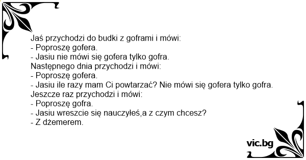 Jaś przychodzi do budki z goframi i mówi: