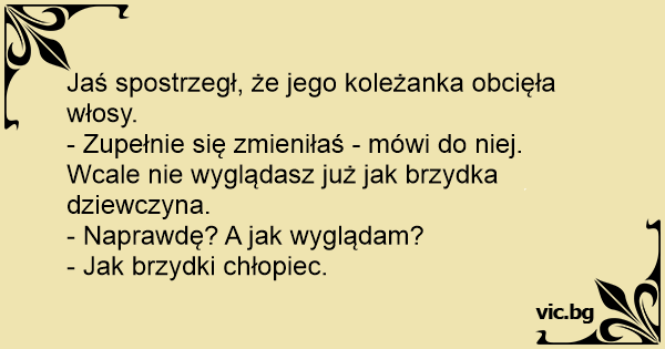 Jaś spostrzegł, że jego koleżanka obcięła włosy.