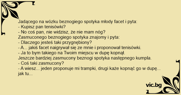 - No coś pan, nie widzisz, że nie mam nóg?