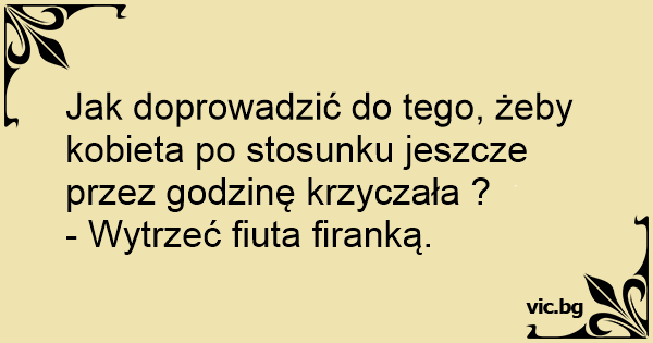 Co zrobić żeby kobieta jeszcze długo krzyczała po stosunku? - Wytrzeć ptaszka o firankę.