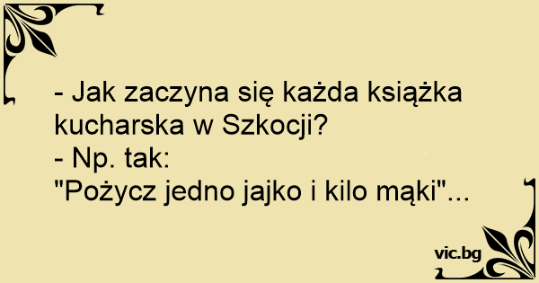 - Jak zaczyna się każda książka kucharska w Szkocji?