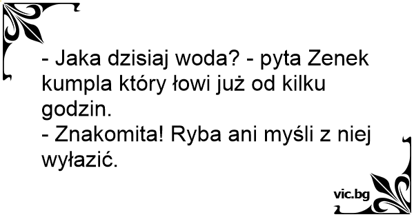 - Jaka dzisiaj woda? - pyta Zenek kumpla który łowi już od kilku godzin.