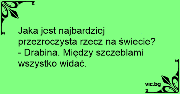 Jaka jest najbardziej przezroczysta rzecz na świecie?<br />- Drabina. Między szczeblami wszystko widać.