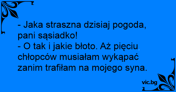 - Jaka straszna dzisiaj pogoda, pani sąsiadko!