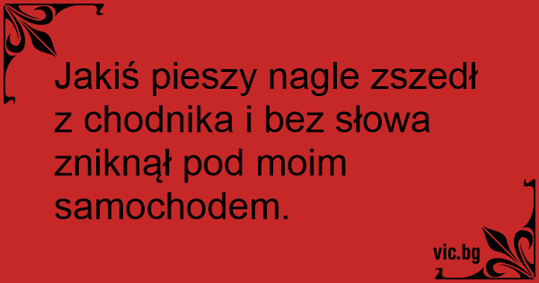 Jakiś pieszy nagle zszedł z chodnika i bez słowa zniknął pod moim samochodem.