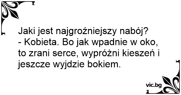- Kobieta. Bo jak wpadnie w oko, to zrani serce, wypróżni kieszeń i jeszcze wyjdzie bokiem.