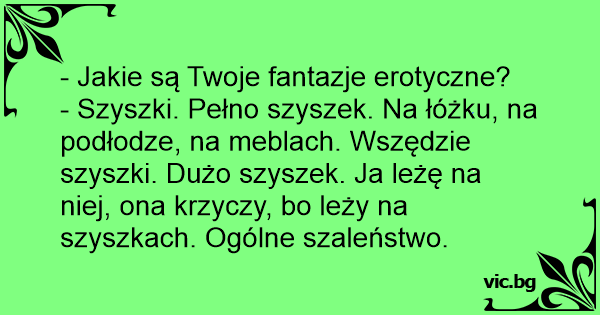- Szyszki. Pełno szyszek. Na łóżku, na podłodze, na meblach. Wszędzie szyszki. Dużo szyszek. Ja leżę na niej, ona krzyczy, bo leży na szyszkach. Ogólne szaleństwo.