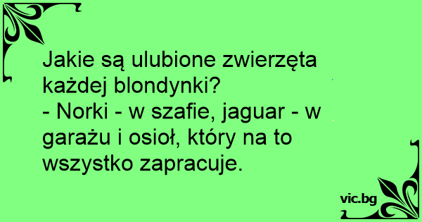 - Melyik az a négy állat, melyet a nők a legjobban szeretnek? - ??? - Egy nerc a szekrényben, egy Jaguár a garázsban, egy bika az ágyban, meg az a marha, aki mindezt fizeti...