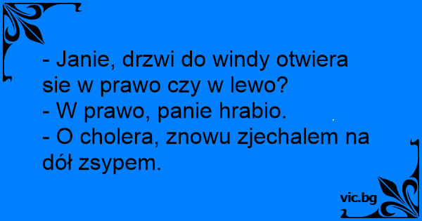 - Janie, drzwi do windy otwiera sie w prawo czy w lewo?