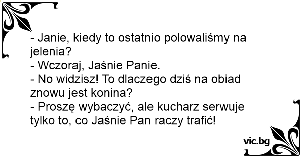 - Proszę wybaczyć, ale kucharz serwuje tylko to, co Jaśnie Pan raczy trafić!