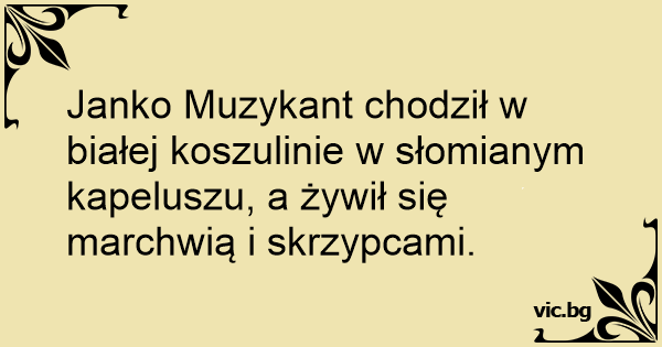 Janko Muzykant chodził w białej koszulinie w słomianym kapeluszu, a żywił się marchwią i skrzypcami.