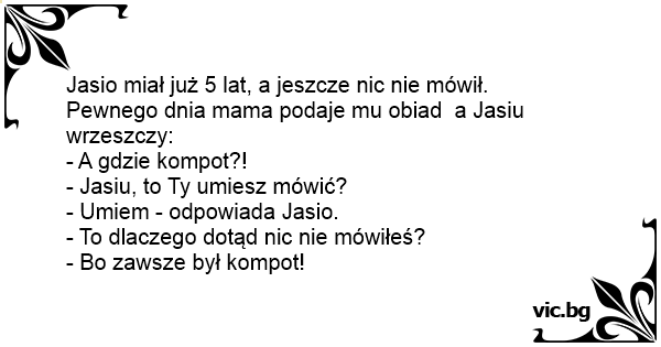 Pewnego dnia mama podaje mu obiad a Jasiu wrzeszczy:
