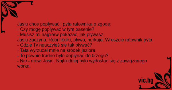 Jasiu zaczyna. Robi fikołki, pływa, nurkuje. Wreszcie ratownik pyta: