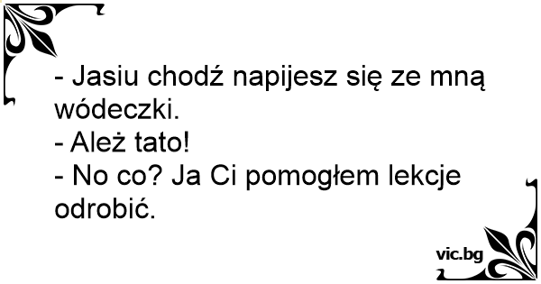 - Jasiu chodź napijesz się ze mną wódeczki.