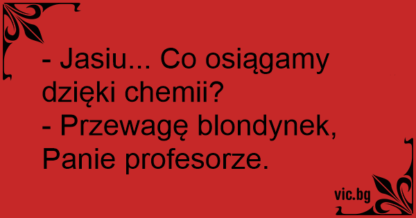 Im Chemie-Unterricht fragt der Lehrer seien Schüler: "Was ist wohl das Schönste, was uns die Chemie geschenkt hat?" Der lange Udo meldet sich: "Blondinen!"
