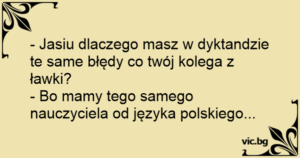 - Jasiu dlaczego masz w dyktandzie te same błędy co twój kolega z ławki?