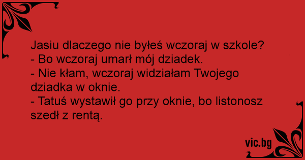 - Nie kłam, wczoraj widziałam Twojego dziadka w oknie.