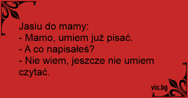- Pappa, pappa, vi har lärt oss att skriva! - Vad skriver ni då? - Vet inte, vi har inte lärt oss att läsa än.