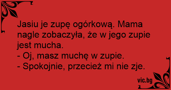 Jasiu je zupę ogórkową. Mama nagle zobaczyła, że w jego zupie jest mucha.