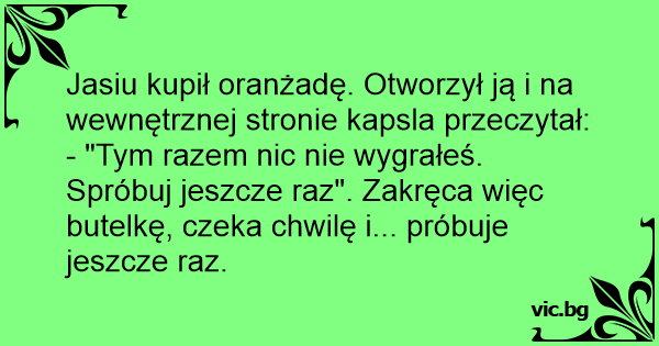 Jasiu kupił oranżadę. Otworzył ją i na wewnętrznej stronie kapsla przeczytał: