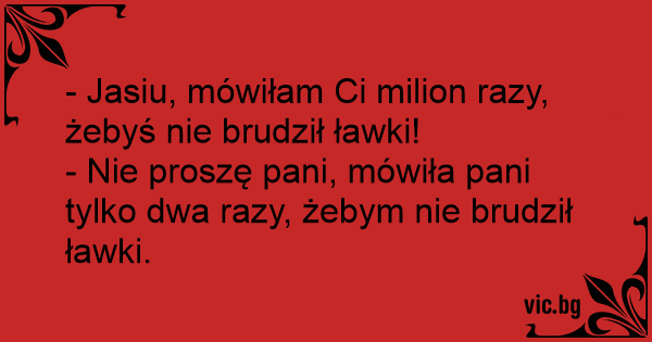 - Nie proszę pani, mówiła pani tylko dwa razy, żebym nie brudził ławki.