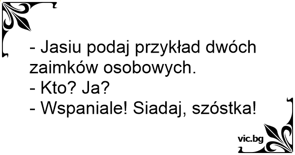 Læreren: "Sig mig 2 personlige stedord." Eleven: "Hvem? Mig?" Læreren: Fuldstændig korrekt!"