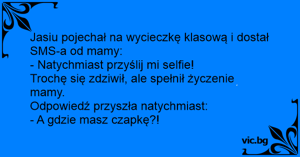 Jasiu pojechał na wycieczkę klasową i dostał SMS-a od mamy: