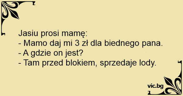 - Anyu, adhatok egy kis pénzt annak a bácsinak, amelyik odakint az utcán kiabál? - És mit kiabál? - Azt, hogy "Fagylalt, itt a finom fagylalt!"