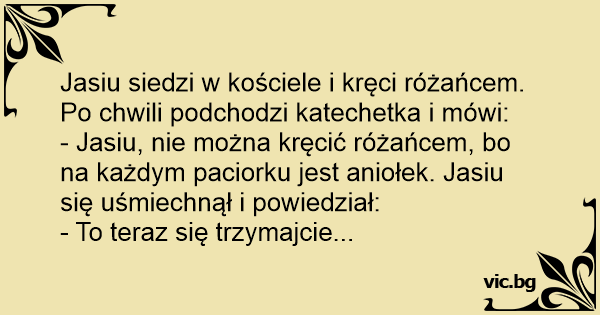 - Jasiu, nie można kręcić różańcem, bo na każdym paciorku jest aniołek. Jasiu się uśmiechnął i powiedział: