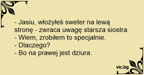 - Jasiu, włożyłeś sweter na lewą stronę - zwraca uwagę starsza siostra.