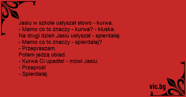 - Kurwa Ci upadła! - mówi Jasiu.