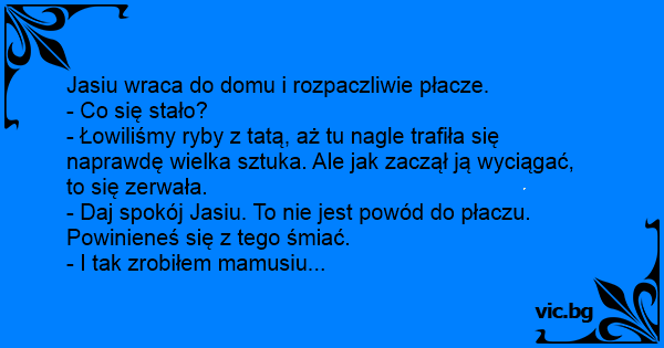 - Daj spokój Jasiu. To nie jest powód do płaczu. Powinieneś się z tego śmiać.