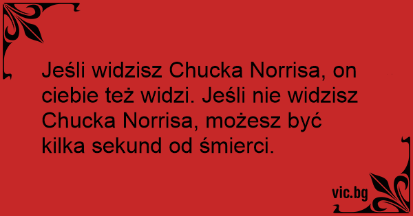 Jeśli widzisz Chucka Norrisa, on ciebie też widzi. Jeśli nie widzisz Chucka Norrisa, możesz być kilka sekund od śmierci.