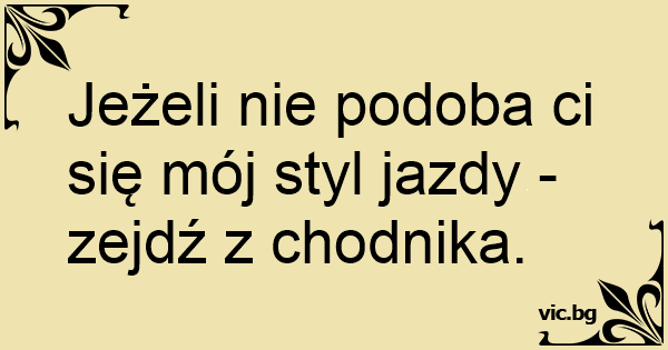 Jeżeli nie podoba ci się mój styl jazdy - zejdź z chodnika.