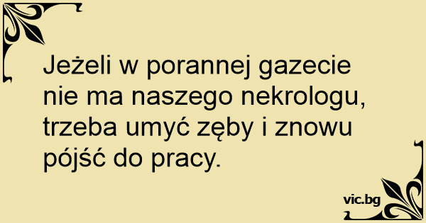 Jeżeli w porannej gazecie nie ma naszego nekrologu, trzeba umyć zęby i znowu pójść do pracy.