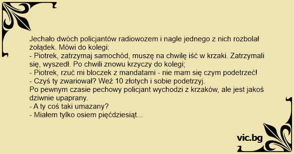 - Piotrek, rzuć mi bloczek z mandatami - nie mam się czym podetrzeć!