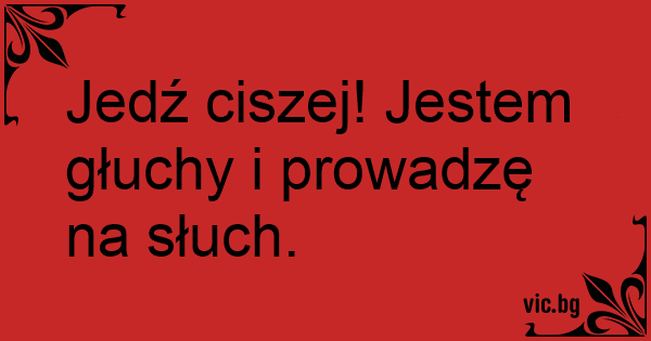 Jedź ciszej! Jestem głuchy i prowadzę na słuch.