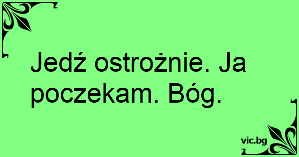 Jedź ostrożnie. Ja poczekam. Bóg.