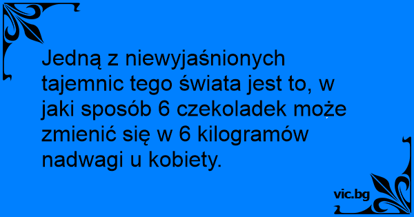 Jedną z niewyjaśnionych tajemnic tego świata jest to, w jaki sposób 6 czekoladek może zmienić się w 6 kilogramów nadwagi u kobiety.