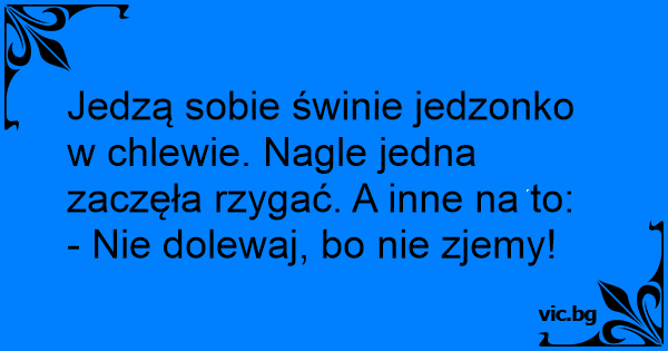 Jedzą sobie świnie jedzonko w chlewie. Nagle jedna zaczęła rzygać. A inne na to: