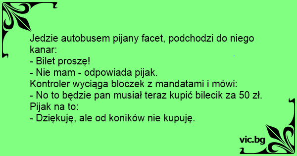 Jedzie autobusem pijany facet, podchodzi do niego kanar: