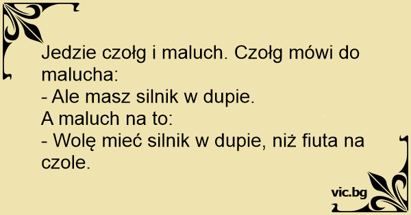 Jedzie czołg i maluch. Czołg mówi do malucha: